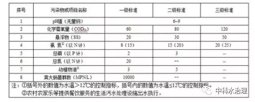 規(guī)模大于 2m3 /d(含)的新建農(nóng)村生活污水處理設(shè)施,水污染物排放限值按下表對應(yīng)的規(guī)定執(zhí)行。