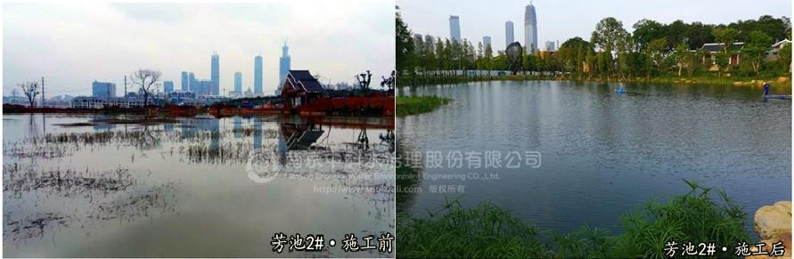 南京中科水治理股份有限公司建設的蘭湖、芳池屬于青秀山蘭園水生態(tài)環(huán)境修復海綿城市示范點,目前蘭湖和芳池水生態(tài)系統(tǒng)已經(jīng)構建完畢,進入優(yōu)化調(diào)整階段。
